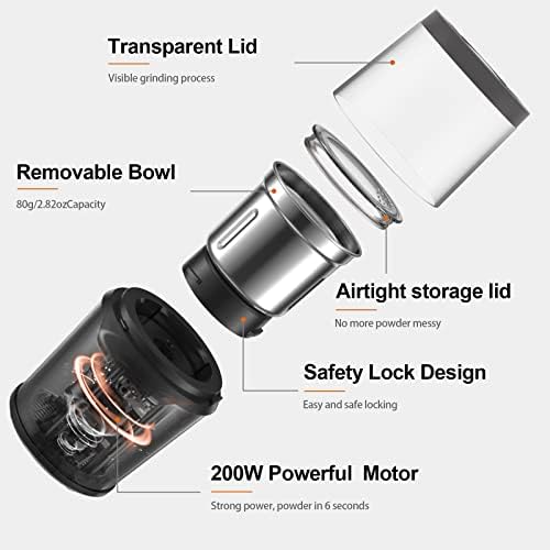 GRIND QUIETLY IN THE MORNING: The compact coffee grinder features a low-noise motor that is quieter than most traditional electric coffee grinders on the market, with less than 55dB of ambient noise. When you grind freshly ground coffee in the morning, you don’t have to worry about making too much noise and disturbing your family, so they can all enjoy a cup of freshly ground coffee.